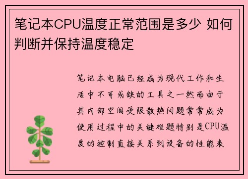 笔记本CPU温度正常范围是多少 如何判断并保持温度稳定