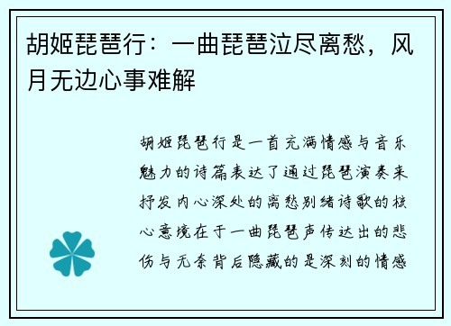 胡姬琵琶行:一曲琵琶泣尽离愁,风月无边心事难解