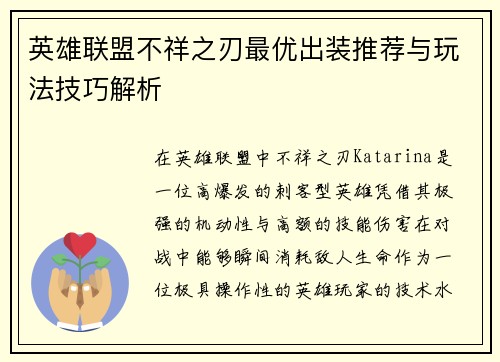 英雄联盟不祥之刃最优出装推荐与玩法技巧解析